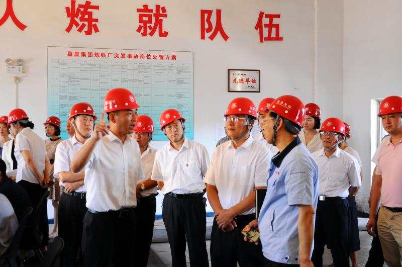 2018年7月20日,營口市老邊區(qū)人大常委會主任周立東,副主任孫朝林、呂光波、張?zhí)鞎煟眳^(qū)長趙洪生、張靜賢,及區(qū)政府辦、安監(jiān)局的主要負責同志在嘉晨集團總裁趙松一的陪同下,來到營鋼公司煉鐵廠對生產(chǎn)安全情況進行視察調(diào)研。