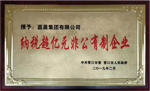 2018年,嘉晨集團堅持嚴格管理,牢固樹立安全環(huán)保發(fā)展理念,以創(chuàng)優(yōu)增效為中心,實現(xiàn)了跨越式發(fā)展,得到了市、區(qū)兩級政府機關的一致好評。我們一定珍惜榮譽,進一步增強責任感和使命感,奮發(fā)進取,真抓實干,為營口地區(qū)經(jīng)濟發(fā)展和社會進步做出新貢獻!